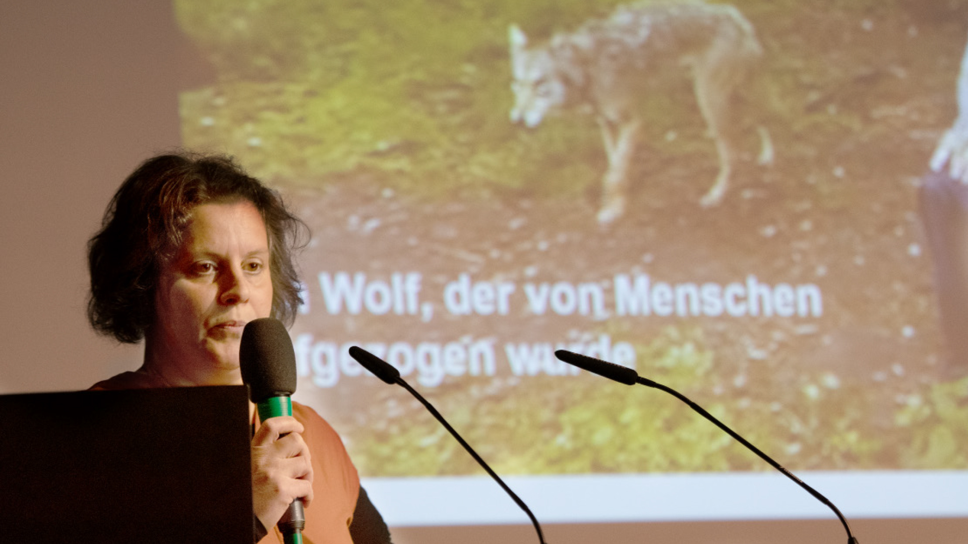 Priv.-Doz. Dr. Zsofia Viranyi, Abteilung Vergleichende Kognitionsforschung am Messerli Forschungsinstitut der Vetmeduni, referierte zur stets brisanten Frage: Hund oder Wolf – wer hat in Sachen Intelligenz die Schnauze vorn? Viranyi präsentierte unter anderem Experimente, in denen Hunde und Wölfe jeweils entweder mit Menschen oder mit Artgenossen kooperieren mussten. Die Bilder, wie leicht sich ein Hund im Vergleich zum Wolf durch einen Menschen leiten und beeinflussen lässt, deuteten eindeutig auf die enge Verbundenheit der Hunde mit Menschen hin, auch wenn diese fremd sind. Die Intelligenz von Hund und Wolf gegeneinander abzuwägen blieb schlussendlich schwierig – zu unterschiedlich sind die Bereiche, in denen mal der Hund und mal der Wolf vorn ist.
