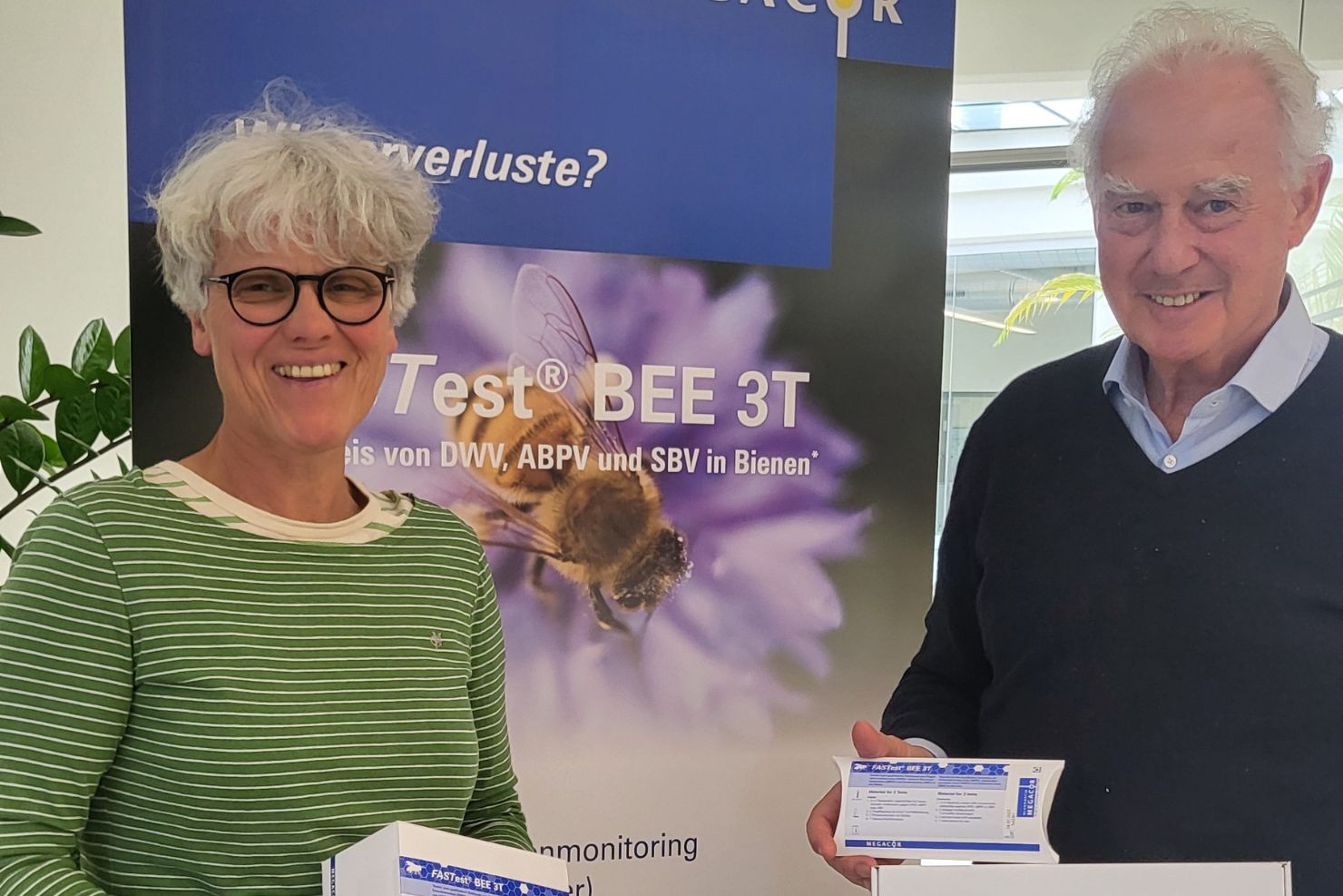 Es wurde ein Röhrchen mit einem Deckel entwickelt, in den der Stößel zum Zerdrücken schon eingebaut ist. Das Prinzip: Fünf tote, im Stock gefundene Bienen kommen in das Röhrchen; diese werden mit dem Zuschrauben des Deckels zerquetscht. Anschließend wird eine im Set enthaltene Pufferlösung auf die Bienen getropft, nach zehn bis 15 Minuten kann man die drei Teststreifen (einer für DWV, einer für SBV und einer für ABPV) ins Röhrchen stellen und das Ergebnis ablesen. Eine Kontrollbande bestätigt den korrekt durchgeführten Test. Kern: „Ziel war es, den Test direkt bei der Arbeit am Stock anwenden zu können. Das Hantieren mit feinen Laborutensilien wäre für Imkerinnen und Imker mit den dicken Handschuhen, dem Hut und der Ausrüstung einfach zu kompliziert. Darum: Bienen rein, Pufferlösung dazu, Teststreifen hinein, fertig“ – eine moderne und schnelle Maßnahme, um ein Virus oberhalb einer bestimmten Viruslastgrenze nachzuweisen. Für Imker / Imkerin bzw. die behandelnde Tierärztin oder den Tierarzt ergeben sich im positiven Fall verschiedene Handlungsmöglichkeiten. Löwenstein: „Medikamente gegen die Viruserkrankungen bei der Biene gibt es nicht, aber man kann bei entsprechenden frühzeitigen Testergebnissen biotechnische Maßnahmen einleiten bzw. im Spätsommer leichter entscheiden, ob und welche Völker man über den Winter zieht. Das ist nicht nur eine wirtschaftliche Frage, sondern schützt unter Umständen auch vor einer weiteren Virusausbreitung im Bestand.“ Zudem sei der Virustest ein wichtiges Tool, wenn es um den Ver- oder Ankauf von Völkern gehe: Böse Überraschungen blieben so aus. Auch im Rahmen der künstlichen Besamung, die gelegentlich angewendet wird, weil die Paarungskontrolle mit erheblichen Schwierigkeiten verbunden ist, könne ein Test sinnvoll sein. Kern: „Ziel ist es, bei regelmäßigen Tests auf die Dauer gesündere Völker zu bekommen.“